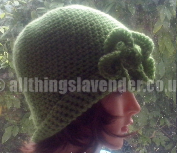 Apple GreenStylish Daisy Hat Hand Crocheted in 100% AcrylicJust the job to keep you warm on Autumn/Winter Nights
